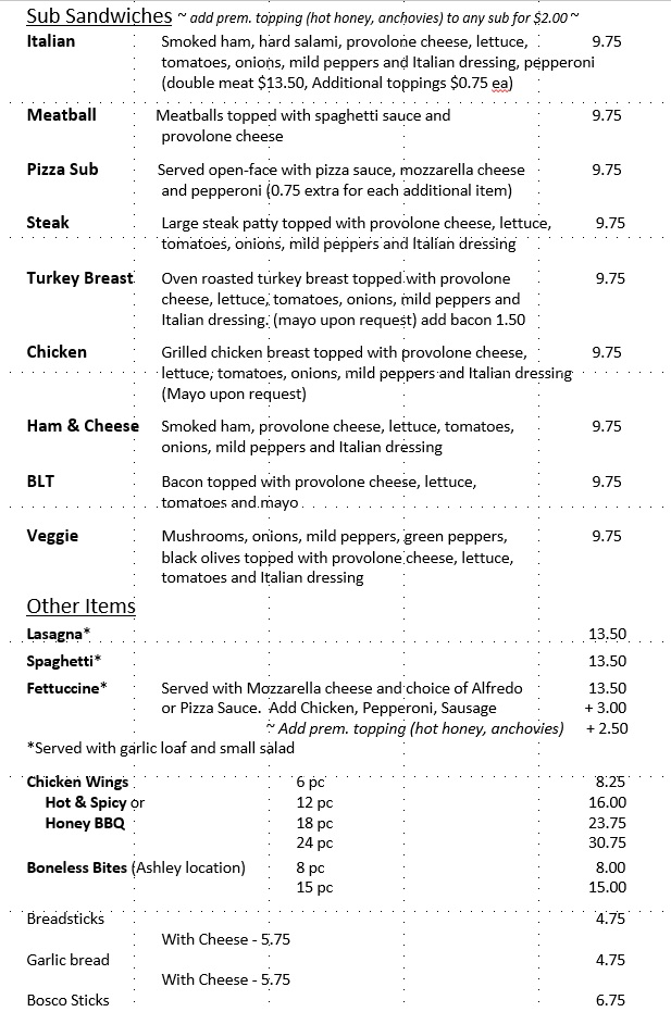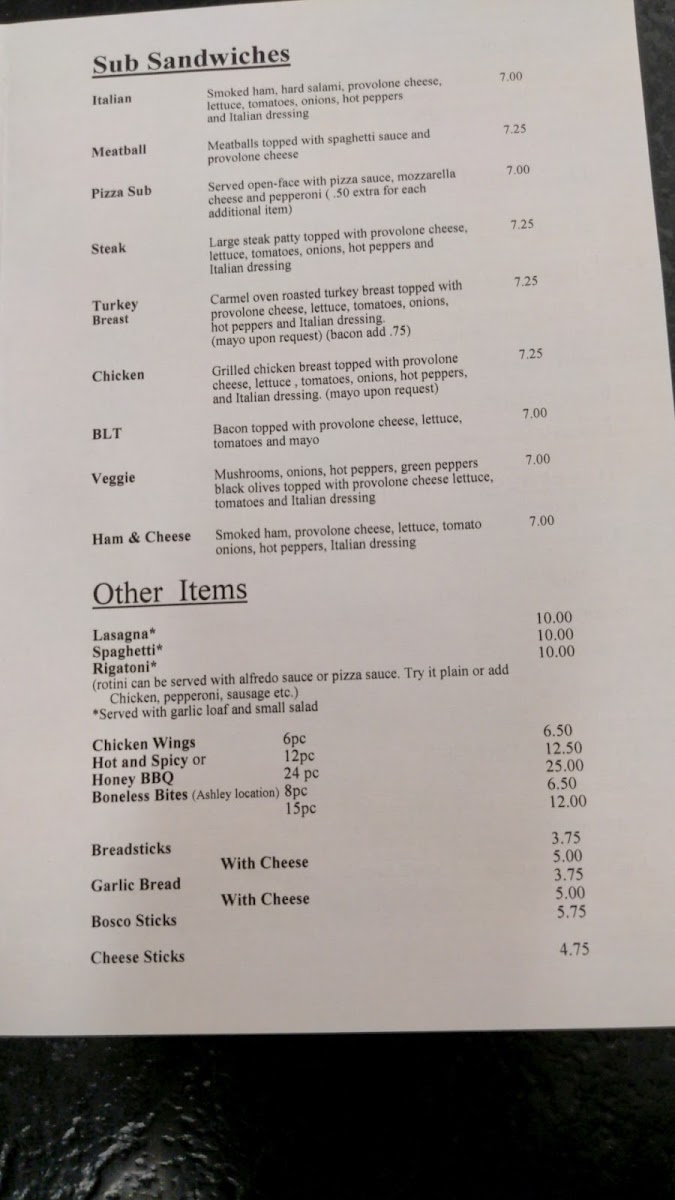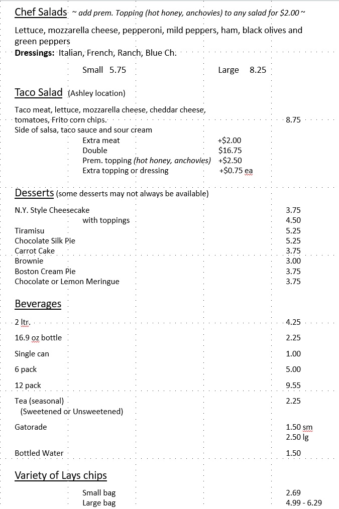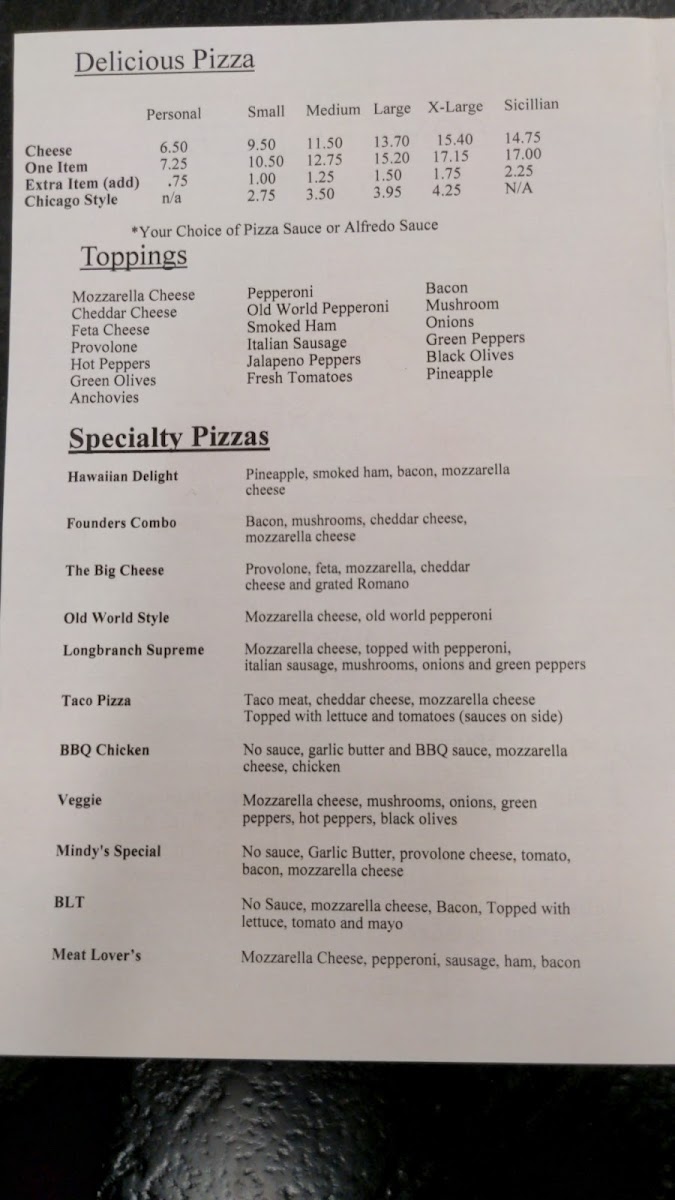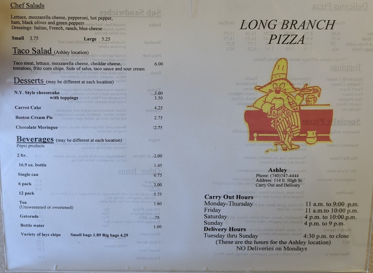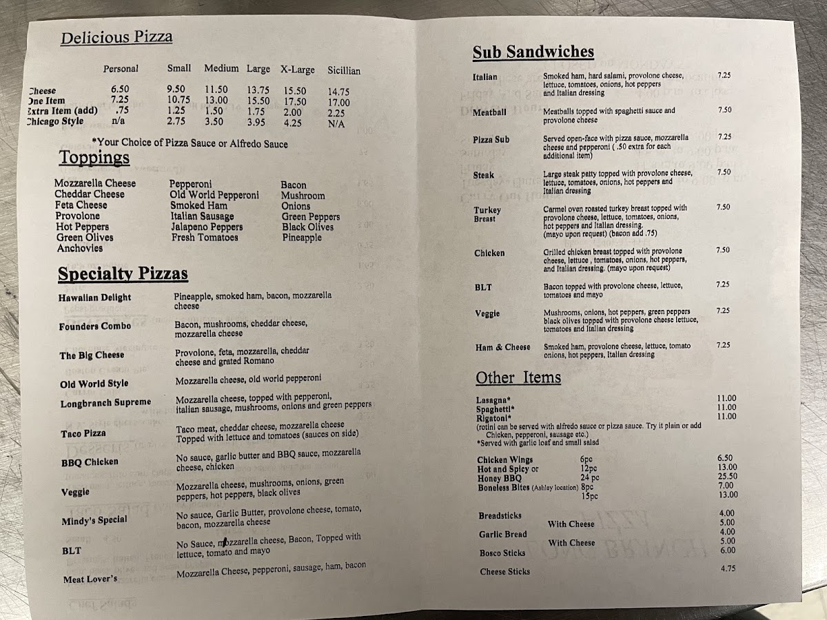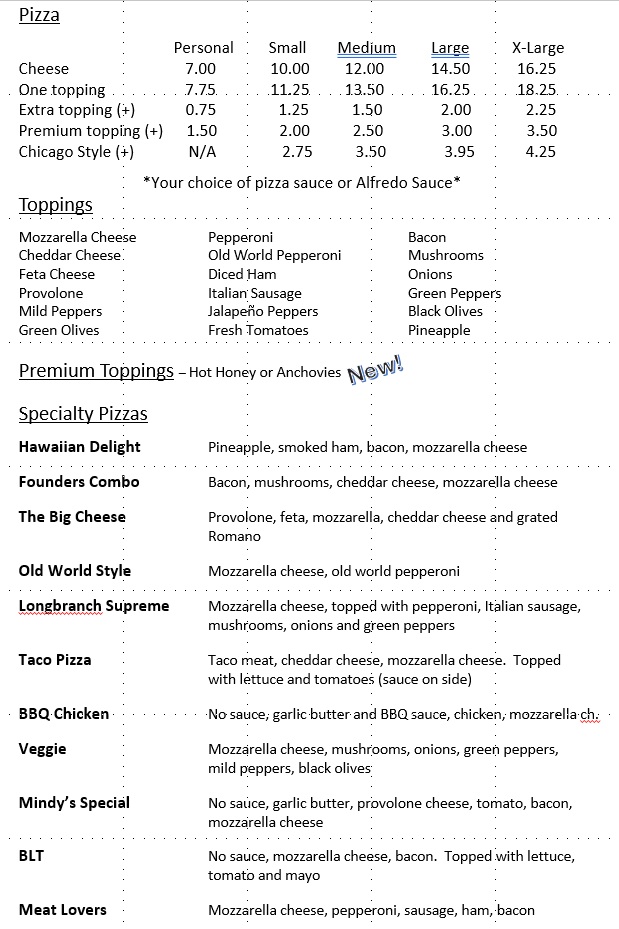 Long Branch Pizzeria - Ashley, OH Menu